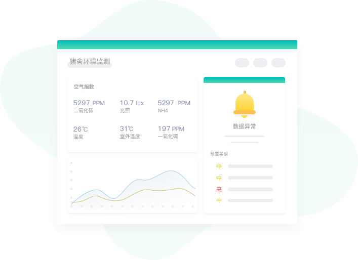 集成高精度環(huán)境傳感器,24小時(shí)不間斷監(jiān)測(cè)養(yǎng)殖場(chǎng)內(nèi)的溫濕度、氨氣濃度、二氧化碳濃度、光照強(qiáng)度等關(guān)鍵指標(biāo)。環(huán)境參數(shù)指標(biāo)異常時(shí),預(yù)警系統(tǒng)即時(shí)響應(yīng),發(fā)送短信、APP消息通知,提示用戶及時(shí)處理;啟動(dòng)智能控制系統(tǒng),自動(dòng)調(diào)節(jié)至最適宜動(dòng)物生長(zhǎng)的環(huán)境條件。